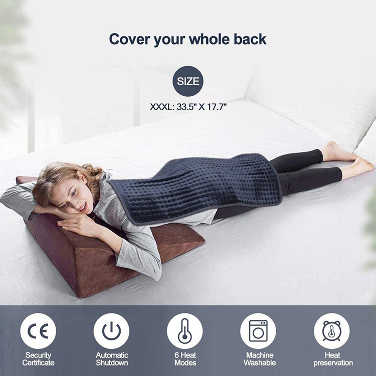 * પેઈન રિલીફ હીટિંગ પેડ: 33.5" x 17.7" ખભા, ગરદન, પીઠ, નિતંબ, પગ, હાથ, ઘૂંટણ, પેટના દુખાવામાં રાહત આપવા માટે મોટા હીટ એરિયા આપે છે. 9ft કોર્ડ તમને ગમે ત્યાં આરામ કરવા દે છે.