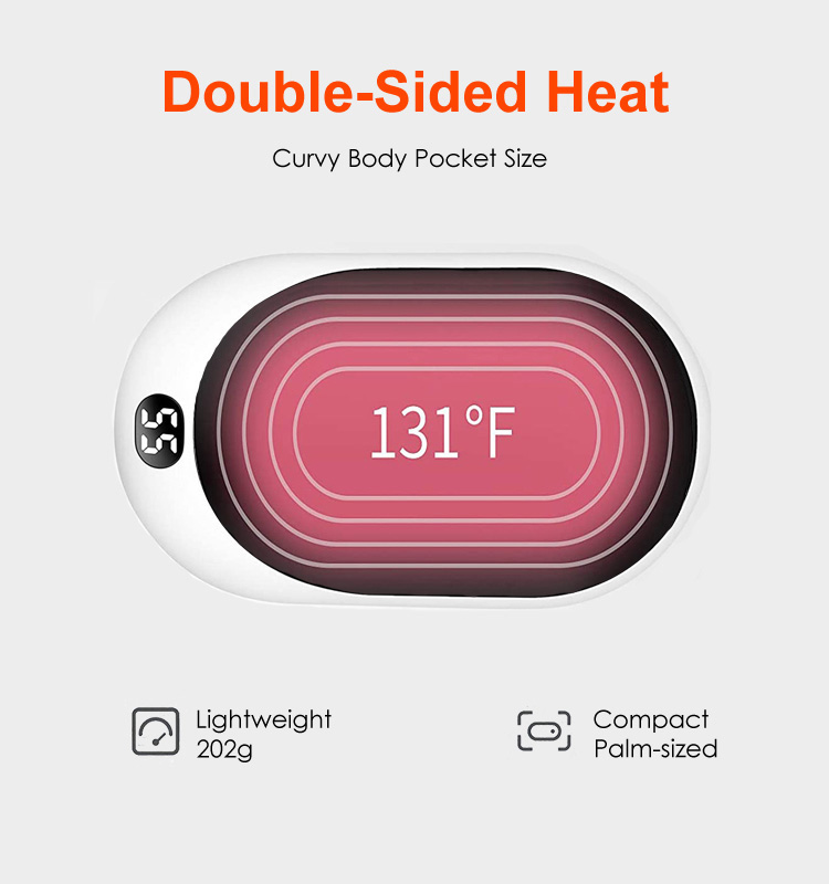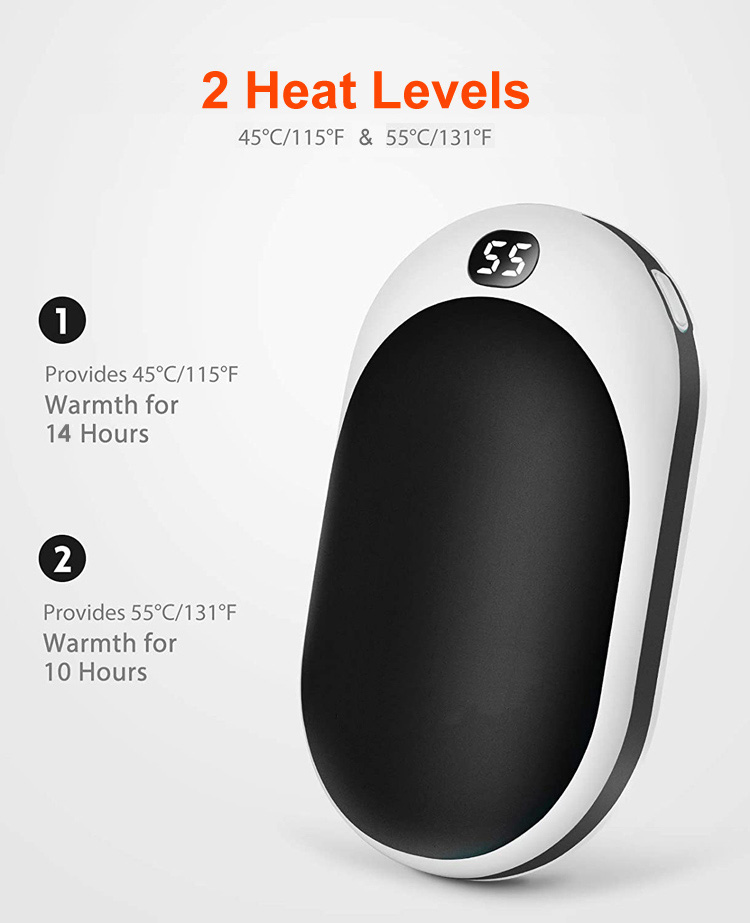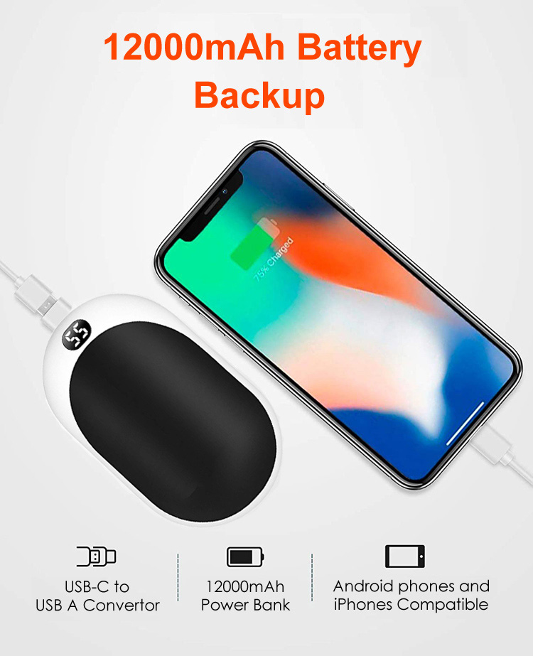| * બિલ્ટ-ઇન 12000mAh લિથિયમ બેટરી સાથે હેન્ડ વોર્મર અને પાવર બેંક ફોન ચાર્જર | |
