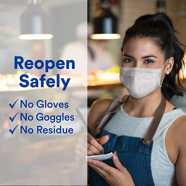 5) સામાન્ય કામકાજના કલાકો દરમિયાન કર્મચારીઓ અને ગ્રાહકોની આસપાસ મોજા અથવા ગોગલ્સ વિના સુરક્ષિત જીવાણુ નાશકક્રિયા, EPA